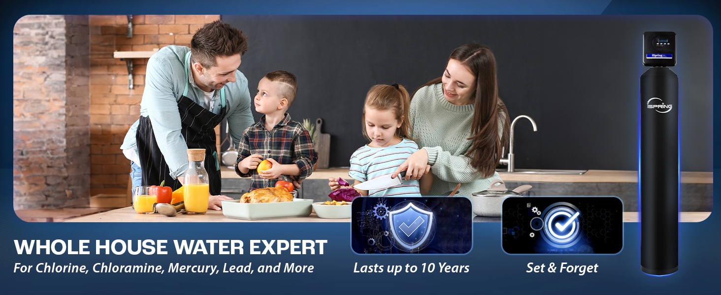 - Protect your household appliances: The WF150K whole house central water filtration system helps to extend the lifespan of your plumbing system and the household appliances, such as washing machine, dishwasher, water heater, etc.