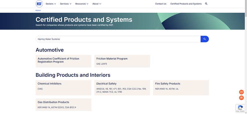 To verify if the product is NSF certified, visit the official NSF International website at www.nsf.org and click on "Certified Products and Systems". Then you can enter the company name, such as "iSpring Water Systems" or simply "iSpring" to check for certification status. This will give you a complete list of all products that have received NSF certification. iSpring: NSF Certified Water Filtration Solutions for Every Need Among all the NSF-certified products we carry, one of the most popular types is a reverse osmosis (RO) system. RO systems remove up to 99% of harmful water contaminants including vinyl chloride, chlorine, fluoride, lead, arsenic, asbestos, calcium, and sodium from your drinking water so that you can have confidence in the water you are consuming. One of our best-selling systems is our RCC7AK. This system Our RCC7AK-UV is an all-in-one, under-the-sink RO system that Our RO500AK-BN is the next-generation, tankless reverse osmosis system. It also uses an alkaline RO filter system and Our WSPARJ-BP is a whole house prefilter that removes large particles and sediments. As the first line of defense, this filter helps protect your appliances and pipes as well as terminal equipment. This filter is ideal for those on a well. Additionally, this filter Here at iSpring, we strive to provide our customers with products they can be confident in and ones that will serve them for years to come with the most cutting-edge water filtration technology to help promote water sustainability while not sacrificing the high water quality they have come to expect from iSpring water filtration systems.
